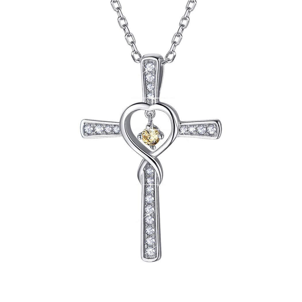 Infinity Love Christian Cross Pendant Necklace – Birthstone & ZirconInfinity Love Christian Cross Pendant Necklace – Birthstone & Zircon